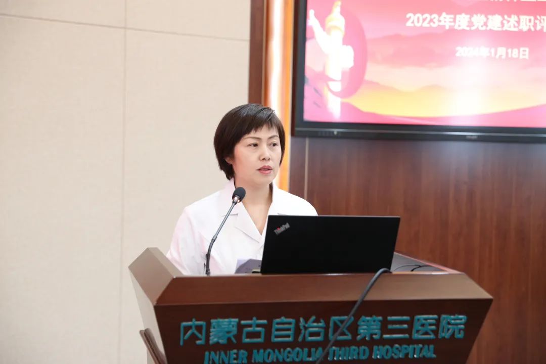 会上,12个原有党支部书记围绕履行党建工作第一责任人职责、贯彻落实党的二十大精神及主题教育开展情况、聚焦铸牢中华民族共同体意识,建设队伍、服务群众等方面进行现场述职。党委班子成员对述职进行了一一点评,提建议、点问题、讲措施。现场对各支部书记述职评议进行了测评。随后新成立的14个党支部代表立足实际重点汇报了党建与业务工作融合思路及举措。陈丽霞书记在总结讲话中肯定了各党支部书记2023年度抓党建工作、党建引领发展等方面取得的成绩并指出了存在的问题。就下一步工作,陈丽霞书记要求:一是把牢医院发展的正确政治方向。加强政治建设,守好意识形态阵地,深入贯彻落实新时代党的卫生与健康工作方针,依托党建联盟,积极开展“党建+心理健康”新模式,推动全区社会心理服务体系建设深入开展。二是围绕中心任务,积极发挥作用。聚焦“两件大事”和高质量发展,围绕“四个攻坚行动”,以开展坚强堡垒模范支部创建为契机,坚持围绕中心抓党建、抓好党建促中心,进一步加强学科建设和人才队伍建设,推动党建业务互融共进。三是着力发挥党建引领保障作用。坚持党管干部原则,把骨干培养成党员,把党员培养成骨干,打造学习型支部、学习型科室和学习型医院。进一步转变工作作风,加强党风廉政建设,严守职业底线,坚持廉洁从业。聚焦“慢粗虚”问题,抓实“六个跑起来”,让狠抓落实蔚然成风,推进各项工作全面提标、提速、提效。密切联系群众,以患者、患者家属和职工需求为导向,立足实际,集思广益,全面推进“三满意医院”建设。