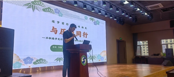 随着中考的脚步日益临近,为了帮助学生们有效缓解考前焦虑,我院第十一党支部携手南丁格尔志愿服务分队,于2024年4月19日走进实验中学察哈尔校区,举办了一场主题为“与压力同行”的压力释放讲座。本次讲座是“感党恩、听党话、跟党走”主题教育系列活动的一部分,这不仅仅是一次思想的交流,更是对未来的启迪和对理想的坚守。参加本次活动的有校领导、班主任及全体初三毕业生共计500余人。