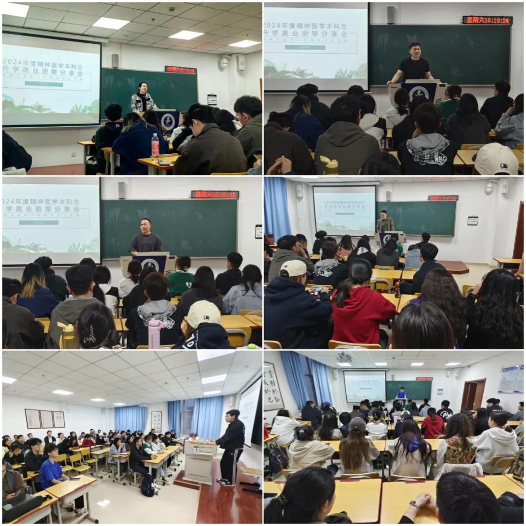 我院党政领导始终高度重视本科生升学就业工作,4月20日下午,在内蒙古医科大学新华校区教学楼203教室,精神卫生学院组织召开2024年度精神医学本科生升学就业朋辈分享会,2020级本科生和部分2021级本科生共计40余人参加。
