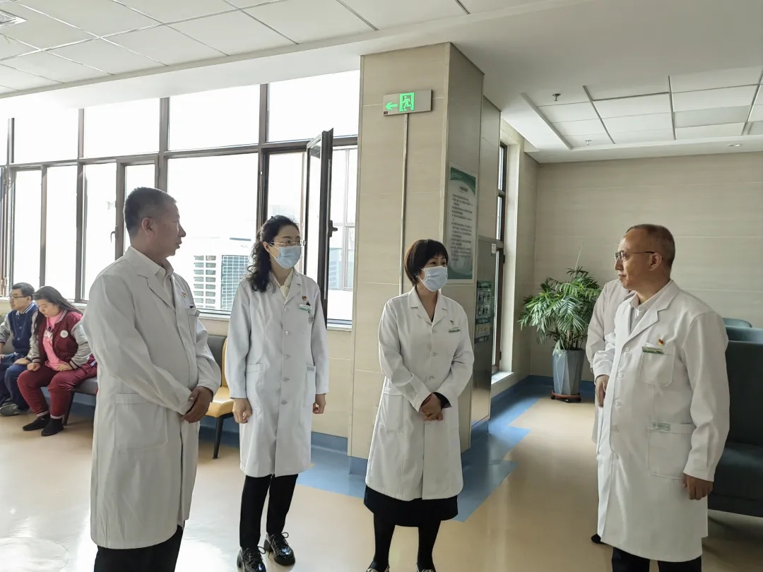 (第三医院)党委开展党建查房,由党委书记陈丽霞带队,党委副书记仝利俊、党委委员、副院长王文忠、黄永清,党委办公室、人力资源部、医务部、护理部、事务中心等相关科室负责人参加,对鸿盛院区进行了常态化问题排查,同时给一线工作人员带去了院党委的慰问和关怀。