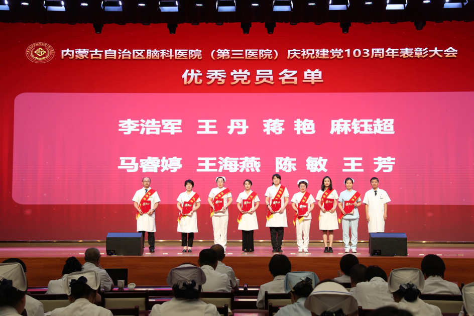 (第三医院)党委召开庆祝建党103周年表彰大会,进一步激励医院全体党员干部进一步坚定信心、振奋精神,担当作为、开拓进取,在推进脑科医院高质量发展的实践中履职尽责、建功立业,以实际行动为党旗增辉添彩。会议由党委副书记仝利俊同志主持。自治区卫健委机关党委专职副书记陈钢同志出席大会,全体党委委员、党员及非党员环节干部、离退休党员代表共计270余人参会。大会在雄壮的国歌声中拉开序幕