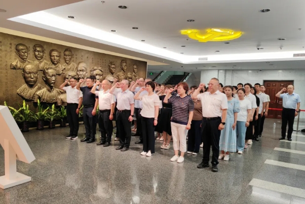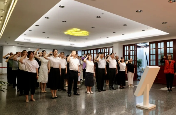 在党委书记陈丽霞,党委副书记、院长于东升的带领下,大家面向党旗庄严举起右手,重温入党誓词。