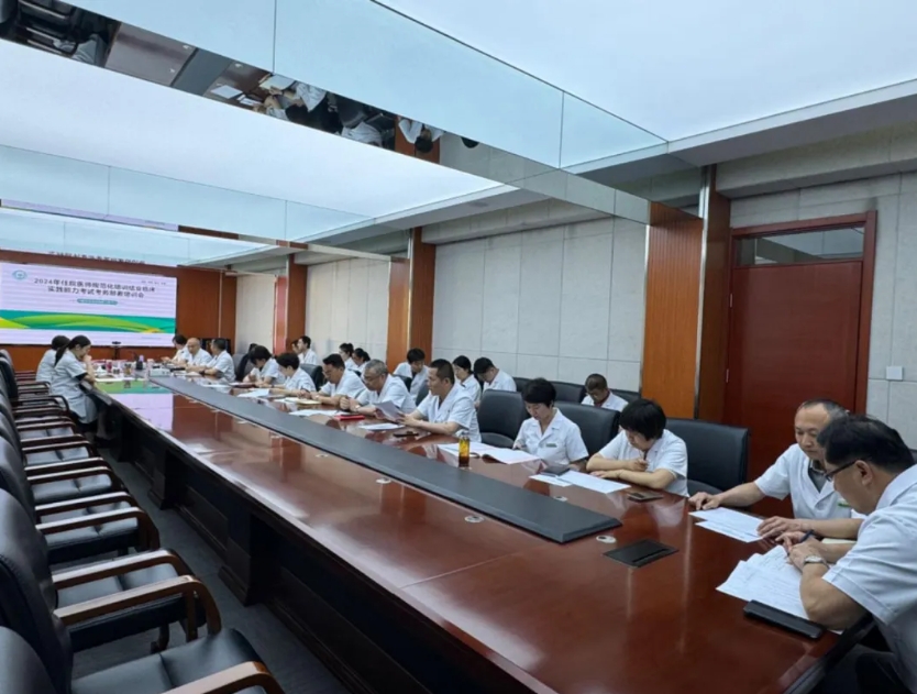 我院高度重视此项工作,按照卫健委要求,制定结业考试实施方案、突发事件应急方案、保密管理制度等,成立以书记院长为组长、副书记为常务副组长、纪委书记和副院长为副组长、各相关科室主任为成员的考试领导小组,明确职责与分工,从考官同质化培训、考场布置、考试流程设计、考站设置、医护保障、健康监测及餐饮保障等方面周密规划、精心筹备。为保证考试顺利进行,5月22日在察布路院区二楼会议室召开部署会,会议由党委副书记仝利俊主持,党委书记陈丽霞、副院长王文忠、相关职能部门负责人及全体考务人员参会。教学部对具体分工进行解读,党委副书记仝利俊强调结业考试工作的重要性,各相关部门按照分工安排全力保障结业考试工作的顺利实施;仝书记现场就考试场地、考核病例、医护保障、考官工作安排等进行部署,陈丽霞书记强调按照上级要求和会议部署大家一起稳扎稳打做好住培各项工作、严守考试纪律。全体与会人员现场签署保密协议。