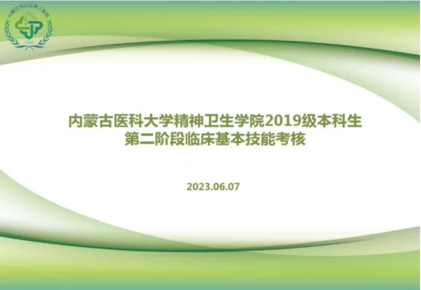 按照内蒙古医科大学《关于2022-2023学年第二学期各类考试安排的通知》和《关于印发<内蒙古医科大学关于临床医学类、口腔医学、中医学、针灸推拿学本科专业实施“三段式”综合考试改革的实施方案>的通知》,6月7日,精神卫生学院在察布路院区教学楼组织2019级39名本科生完成第二阶段临床基本技能考核。
