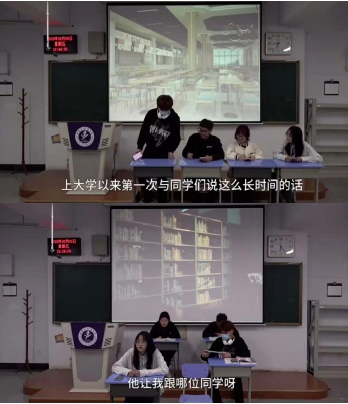 《向南望北》这部心理情景剧,是由我院大一学生张春蕾创作,主要讲述了主人公南望,本就内向敏感,在陌生且未知的大一生活中,展现出了“社恐”的样子,而后在学姐向北的鼓励下,通过“行为实验”和寻求学校心理咨询中心老师的帮助,逐渐明白自己的恐惧可能更多来源于“不合理信念”,最终通过认知行为疗法的调整,开始逐步融入大学生活。