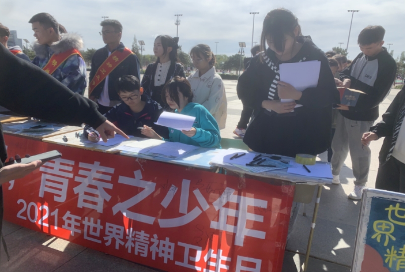 2021年10月10日是第30个“世界精神卫生日”,国家卫生健康委员会将“青春之心灵 青春之少年”定为中国世界精神卫生日的主题,倡导全社会关注、支持儿童青少年心理健康促进工作,积极推进《健康中国行动(2019-2030年)》心理健康促进行动和《健康中国行动一儿童青少年心理健康行动方案(2019-2022年)》。为促进大学生心理健康和全面素质发展,由内蒙古医科大学精神卫生学院承办,以“青春之心灵,青春之少年”为主题的“世界精神卫生日”宣传活动在内蒙古医科大学金山校区生活广场上进行。