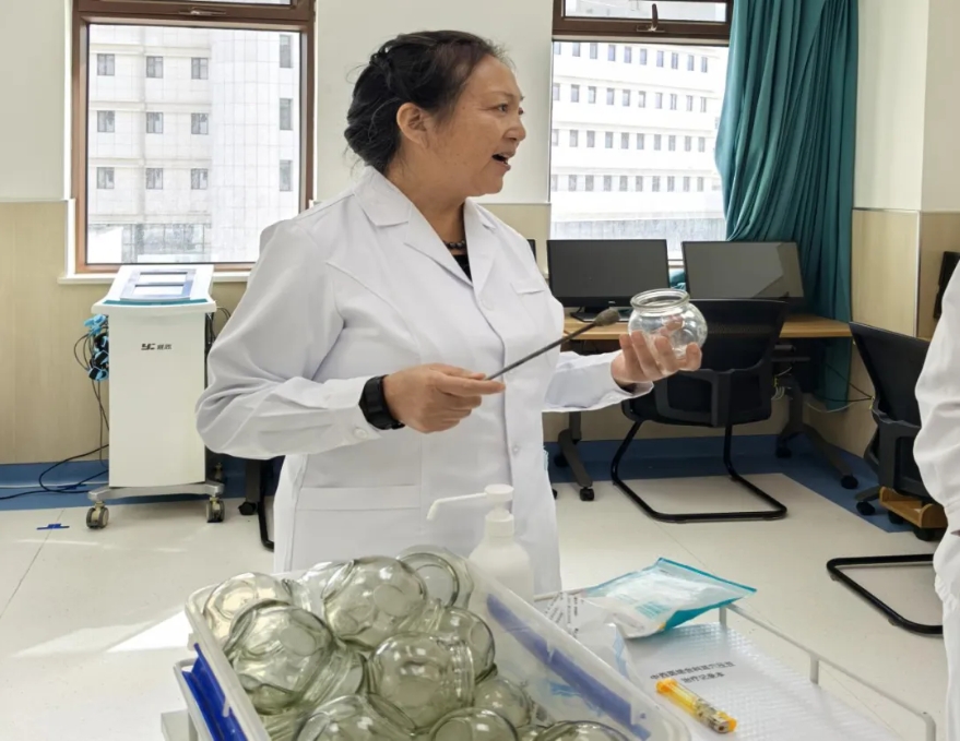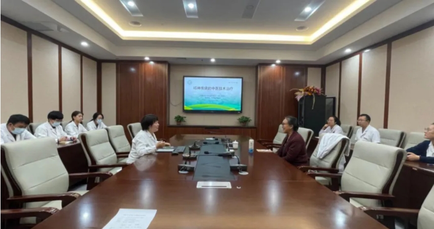 张捷教授开展了题为《中医治未病理念》、《精神疾病的中医技术治疗》的讲座。中西医结合科、神经康复科和睡眠医学中心中蒙医医师参加学习。张捷教授首先从“治未病”的起源、为什么“治未病”、怎样“治未病”、中医疾病的预测、日常生活中体质的辨识与调理及“治未病”的现代应用与案例分享等几大方面进行讲授,指导结合精神疾病的中医养生方法。随后张捷教授进行了精神科常见不良反应如迟发性运动障碍、便秘、女性月经紊乱或闭经的中医诊治的讲座,强调精神疾病的诊疗也应做到“未病先防、既病防变、瘥后防复”。同时对在研项目《加味芍药甘草汤对抗精神病药致高泌乳素血症的疗效研究》进行指导,张捷教授深处浅出的讲解,使与会医师受益良多。最后张捷教授对与会医师提出的疑难技术问题进行解答。20日下午,张捷教授针对我院目前开展的中医诊疗项目进行技术指导,并讲授月经紊乱、肥胖、便秘等精神科常见药物副反应的针灸治疗经验,并对目前在研项目《穴位埋线联合抗精神病药物治疗慢性精神分裂症脑功能研究》中涉及的穴位及埋线手法进行指导。丰富多彩的实践操作演示,使大家能够更直观地了解和掌握中医拔罐、针灸、埋线的技术要点。