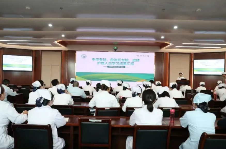 为进一步促进护理人才培养、更新服务理念、交流学习经验、展示学习成效,有效推动医院临床护理工作的发展, 达到资源共享、整体提高的目的,于9月18日下午我院护理部在鸿盛院区组织中华护理专科培训、自治区护理专科培训、护理进修学习人员进行学习成果分享汇报。全院护士长、副护士长及科室骨干近70余人参加分享会。
