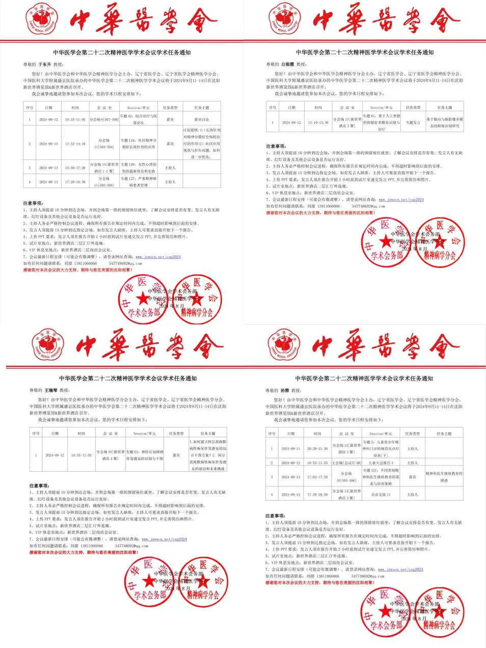 2024年9月11日至14日,由中华医学会及中华医学会精神医学分会主办,辽宁省医学会、辽宁省医学会精神医学分会、中国医科大学附属盛京医院协办的第二十二届中华医学会精神医学学术会议在沈阳召开。我院作为内蒙古自治区精神卫生领域的龙头单位,代表全区十二个盟市的精神卫生领域从业者,参加了这次盛会,于东升院长、白银霞副院长、孙雅主任和王瑞琴主任受邀作了精彩的专题报告。