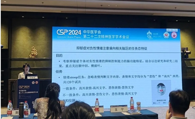白银霞副院长进行了题为“基于眼动与脑影像多模态的抑郁识别研究”的专题汇报。详细介绍了如何利用眼动追踪技术和脑影像技术相结合的方法,来识别和分析抑郁症患者的生理特征,并为未来的治疗提供新的思路和方法。