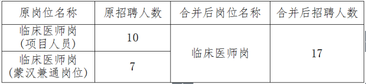 根据《内蒙古自治区第三医院(精神卫生中心)2018年公开招聘工作人员简章》,经自治区事业单位人事综合管理部门批准,现将部分岗位合并公告如下: