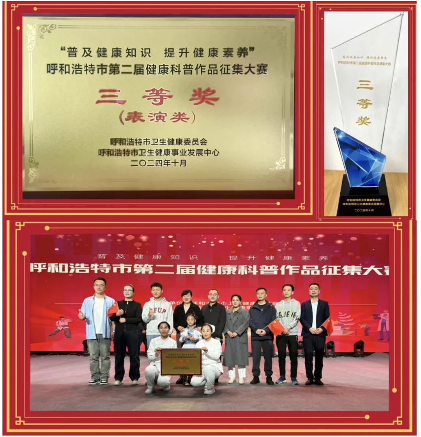 2024年10月29日,由我院护理部选送的原创健康科普情景剧作品《不会消失的爱》参加呼和浩特市卫生健康委主办的“普及健康知识 提升健康素养”呼和浩特市第二届健康科普作品征集大赛表演类作品展演大赛,在16支决赛队伍中脱颖而出,荣获表演类三等奖。