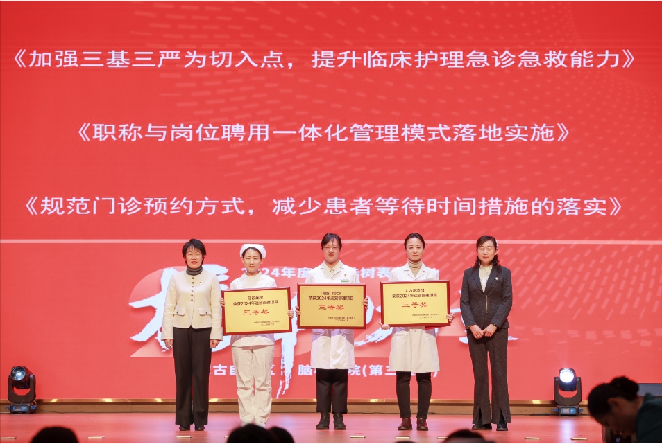 在激昂的音乐声中,表彰仪式正式开始。本次榜样的力量——2024年度典型选树表彰涵盖了“最佳科普宣传个人”、“最佳医德医风个人”、“最佳模范家风个人”、“最佳师德先进个人”、“最佳科研创新个人”、“最佳医疗先锋个人”、“最佳精心护理个人”、“最佳行业模范个人”及“最佳服务临床集体”、“最佳技术模范集体”和“最佳精细运营集体”等12个个人和集体,以及在运营管理项目中获一、二、三等奖的各项目。颁奖领导为各获奖者颁发奖杯和鲜花,鼓励他们在各自工作岗位上取得的成就。