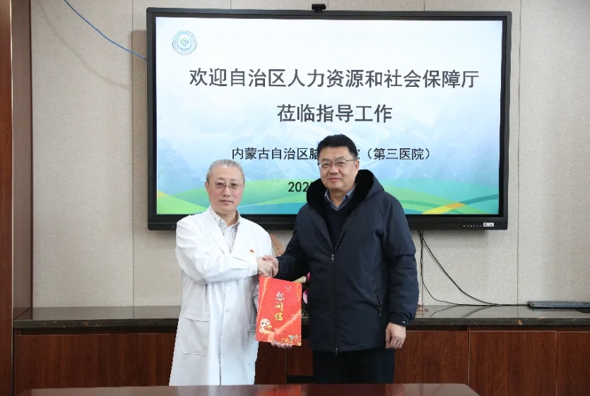 1月13日,内蒙古自治区人力资源和社会保障厅党组成员、社会保险事业服务中心主任赵永刚、自治区人事人才公共服务中心党委书记冯东海一行来我院看望慰问高层次人才代表并召开座谈会。医院领导班子全体成员出席座谈会,会议由党委副书记、院长于东升主持。