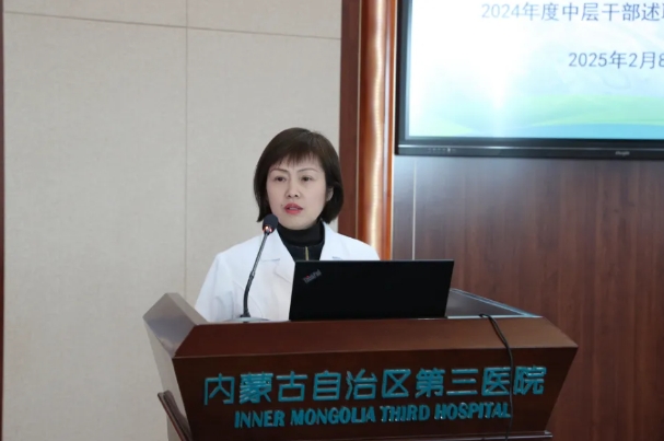 陈丽霞院长对本次述职进行点评总结。陈院长充分肯定了各中层干部在过去一年的辛勤付出与工作成绩,也指出了存在的不足,并对新一年的工作提出了明确要求:一是各部门要持续坚持党建引领,凝心聚力,全心全意为患者服务。行政职能科室要明确职能定位,高站位、深谋划,提升大局意识,履行好引领作用;业务科室要将医、教、研、管与公共卫生工作齐抓共管,创新思路,强化人才培养,提升辐射力与影响力,确保全面质量安全;二是中层干部要强化责任担当,切实履行好“一岗双责”,发挥带头作用,面对机遇与挑战,全院上下要进一步提振信心,团结拼搏、锚定目标通力协作,勇于创新,真抓实干,聚力服务质量提升;三是要注重评议结果运用,以述职评议为契机,完善干部考评机制,营造能者上、庸者下的良好干部生态环境,激励干部职工担当作为精神。此次述职会议,既是一次年度盘点工作、展示成绩、总结经验、激励干劲的总结会,也是一次展望未来、明确目标的动员会。2025年,医院全体干部职工将紧紧围绕医院重点工作,锚定目标,持续奋进,谱写医院高质量发展新篇章。