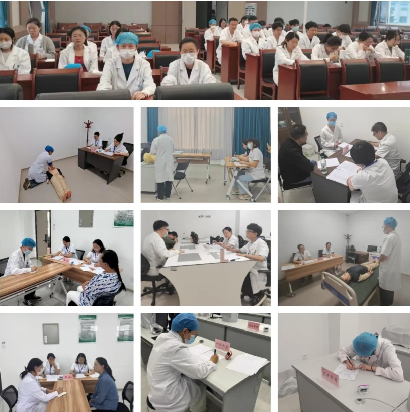我院对此项工作高度重视,根据各考站要求安排考官及考务人员,明确职责与分工。理论考试在标准化教室完成,技能考试为客观结构化考试(OSCE),根据考试要求,技能考试共设五站,第一站病史采集、精神检查、病例分析,第二站体格检查、神经系统检查,第三站病历书写,第四站和第五站技能操作。病史采集、精神检查及病例分析采用口试(SP)形式完成,体格检查、神经系统检查和技能操作都以实践操作作为考试方式。为保证考试公平公正,不同组别考生分别采用不同的考题,考试全程设有引导员,考生按照考试顺序号及时间安排有序进入各站点。