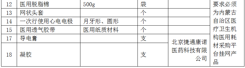 4、以上所有品种凡是属于内蒙古自治区医疗卫生机构医用耗材采购平台目录的,投标人必须投该平台产品。