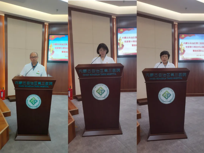 根据医院党史学习教育安排,7月14日下午,内蒙古自治区第三医院党委召开理论中心组2021年第14次(扩大)学习会暨党史学习教育第9次集中(夜校)学习会。党委委员、院长隋晓杰主持会议,全体党委委员、环节干部和支部书记、支部委员参加了学习会。会上,集中学习了习近平总书记在庆祝中国共产党成立100周年大会上的讲话和在青海、广西、福建考察期间重要讲话精神及主持十九届中共中央政治局第三十一次集体学习时重要讲话精神、参观“‘不忘初心、牢记使命’中国共产党历史展览”时重要讲话精神。第五、第六、第七党支部党员代表围绕学习领会习近平总书记“七一”重要讲话精神进行交流发言。