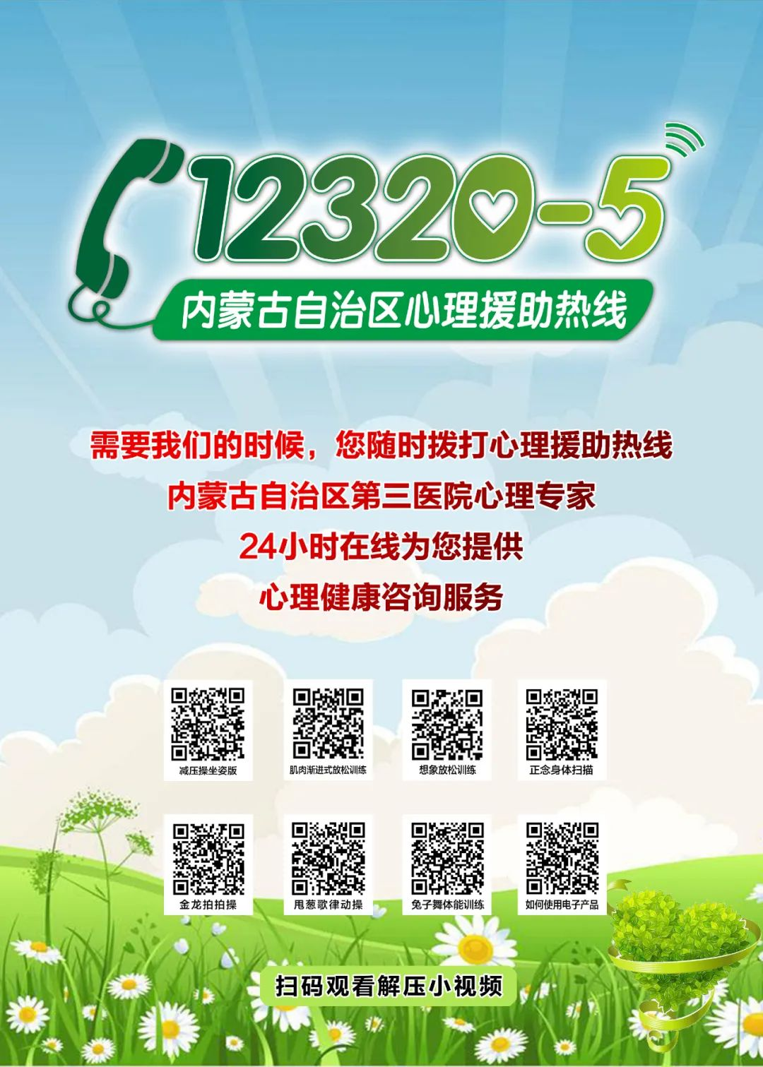 陈丽霞介绍:“我们医院的心理援助热线电话‘12320-5’,24小时为有需要的人提供专业的心理服务和帮助。”